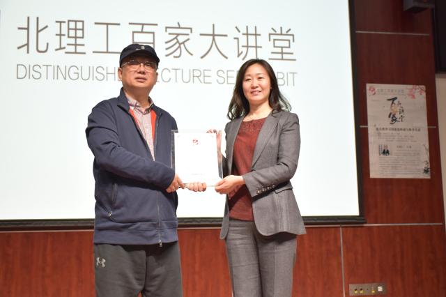 讲座最后,校党委副书记包丽颖向江雷院士颁发了北京理工大学“百家大讲堂”纪念证书并赠送了镌刻有北理工学生为江雷院士创作的《踏莎行•赠江雷院士》的竹简作为纪念。