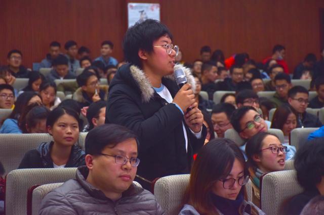 江雷院士生动幽默的讲座深入浅出,现场掌声不断,气氛热烈。在互动环节,同学们纷纷向江雷院士讨教把握科学灵感、找到科学选题、高效做出原创科学成果的经验和技巧,江雷院士以他通过荷叶的露珠研制出仿生特殊浸润性界面材料的亲身经历给予学生们耐心且细致的解答。